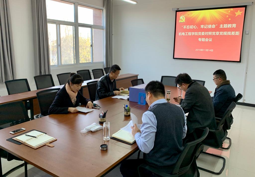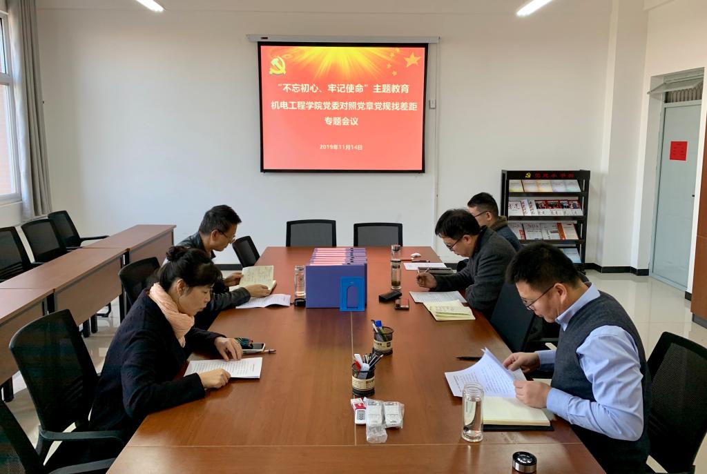 2019年11月14日,Beat365中文官方网站党委在临潼校区笃行楼315党团活动室召开“不忘初心、牢记使命”主题教育对照党章党规找差距专题会议。学院党政领导班子成员、党委委员参加了会议。会议由学院党委书记王鸣媛主持。