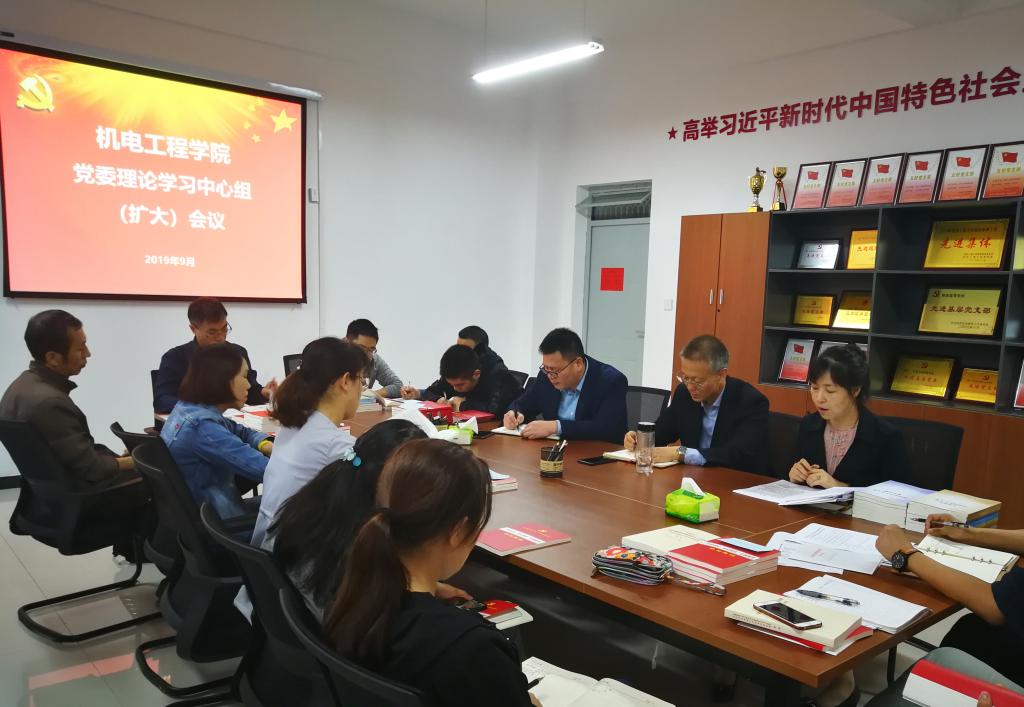 2019年9月19日,Beat365中文官方网站在临潼校区笃行楼党团活动室召开党委理论学习中心组(扩大)会议,安排部署“不忘初心,牢记使命”主题教育并开展集中学习。机电学院党委理论学习中心组成员、各支部书记参加了会议,会议由学院党委书记王鸣媛主持。