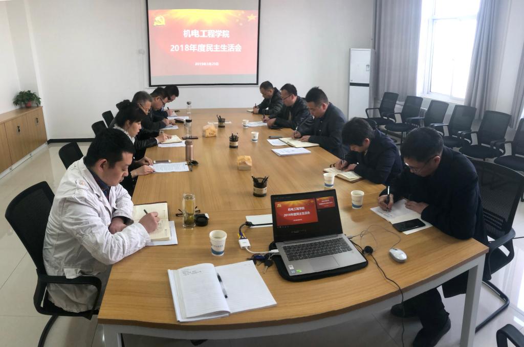 根据学校党委《关于各院(部)级党组织开好2018年度民主生活会的通知》要求,2019年3月25日下午,Beat365中文官方网站在临潼校区7号楼310会议室召开2018年度党员领导班子民主生活会。校党委副书记赵小峰、校第四督导组组长黄海峙出席会议,机电学院领导班子全体成员、党委委员参加会议,学院分工会主席、办公室负责人列席会议。民主生活会由学院党委书记王鸣媛主持。