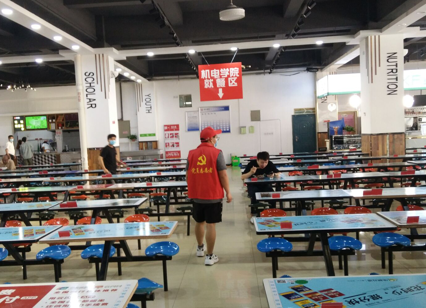 初夏时节,绿意盎然,自本科毕业生返校复学以来,工程大临潼校区恢复了生机和活力,同时还多了一道亮丽的风景——“红马甲”党员先锋岗,他们是机电学院疫情防控的一支重要力量。“疫情当前,党员先行”,机电学院党员先锋岗由30多名教工党员和108名学生党员组成,由学院党委统一指挥,分别在1号、5号和9号宿舍大厅进行晨午检督导,在错峰就餐场所维持秩序,同时帮助毕业生明晰在校防控流程、正确掌握疫情防控科学对策,为学院严格执行复学后的点对点闭环管理,筑牢疫情“防控墙”增强了防控力量。师生党员与辅导员、本科生毕设导师、研究生导师等密切联动,耐心指导学生做好返校复学和健康排查工作,在全面落实联防联控措施、构筑群防群治严密防线过程中发挥了党组织的战斗堡垒和先锋模范作用,使党旗在疫情防控一线高高飘扬。