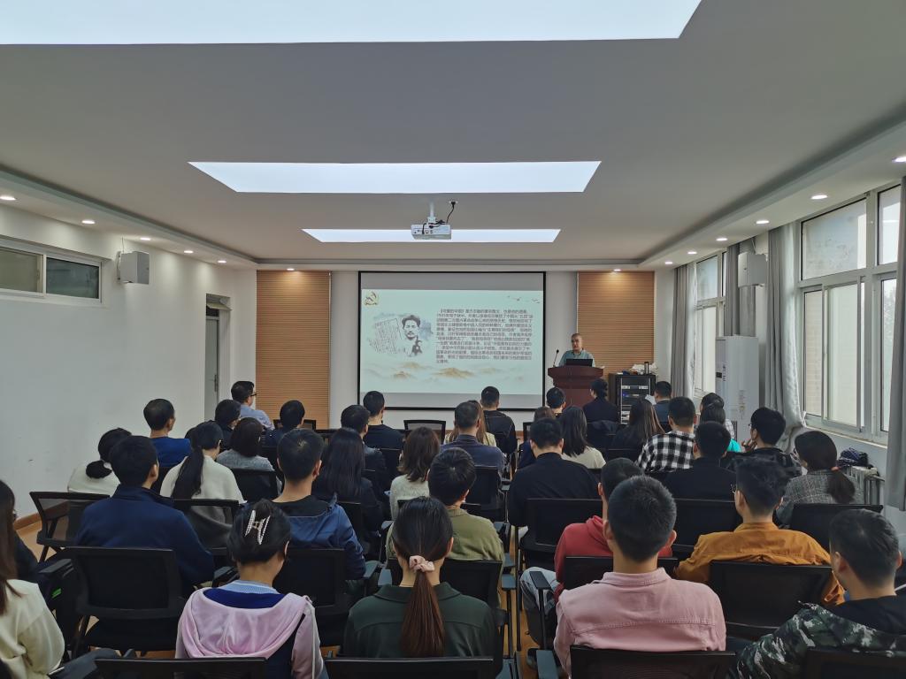 为深入学习贯彻习近平总书记“七一”重要讲话精神,扎实推进党史学习教育,进一步激发全院师生党员学习“四史”的积极性,2021年9月28日,Beat365中文官方网站特邀请学校离退办党委书记张平老师为学院师生党员做了题为《歌声中的党史记忆》主题报告。学院全体教师党员和部分学生党员参加了报告会,报告会由学院党委书记王鸣媛主持。