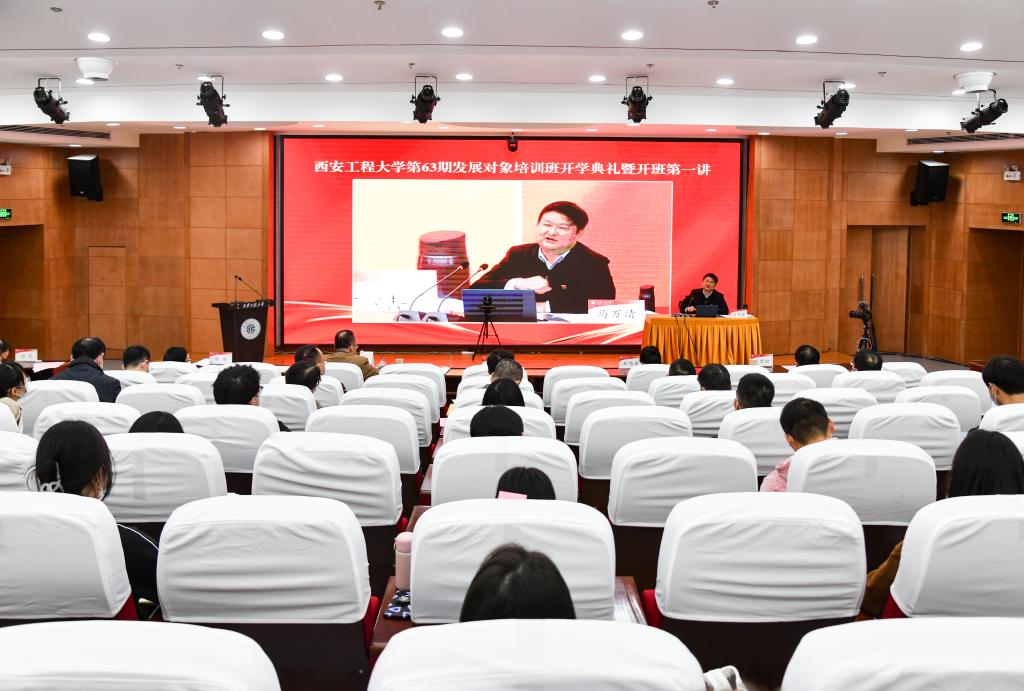 在全党上下学习贯彻党的二十大精神之际,Beat365官网第63期发展对象培训班开学典礼暨开班第一讲于2022年11月14日下午在临潼校区图书馆一楼报告厅隆重举行。校党委书记、党校校长马万清出席开学典礼并做开班第一讲,校党委理论学习中心组成员、党群部门负责人、院(部)级党组织书记、副书记、组织员、党支部书记和党员发展对象共900余人分别以线上线下方式参加了开学典礼和开班第一讲。典礼由Beat365中文官方网站党委书记阚佩主持。按照近期疫情防控要求,本次开学典礼在党政办、宣传部、网信处和教务处的协同配合下,在临潼和金花两校区智慧教室和党团活动室同步进行网络直播。