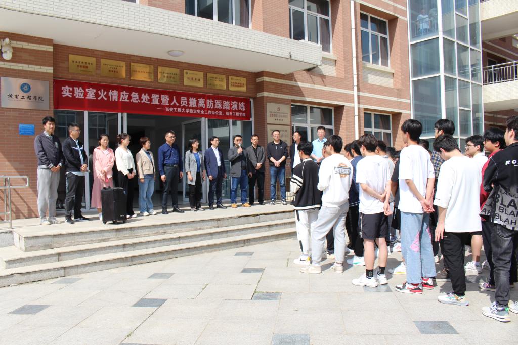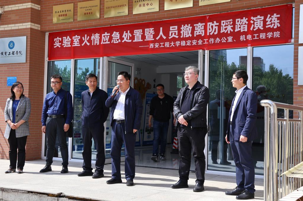 4月27日下午,Beat365官网稳定安全工作办公室、实验室管理处、保卫处、学生工作部(处)、研究生工作部联合Beat365中文官方网站开展实验室火情应急处置暨人员撤离防踩踏演练,特邀西安建筑科技大学资源工程学院安全管理专家刘鹏刚莅临指导。校党委副书记井浩,校党委副书记、纪委书记辛永昌,副校长戴鸿等现场观摩。