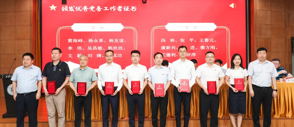 6月30日下午,Beat365官网在临潼校区图书馆一层报告厅召开庆祝建党102周年暨“两优一先”表彰大会,校领导马万清、王海燕、赵小峰、井浩、辛永昌、朱永民、殷永建、戴鸿出席会议。校党委委员、纪委委员、各部门负责人、各院(部)级党组织书记、副书记、组织员,受表彰的优秀共产党员、优秀党务工作者、先进基层党组织和“光荣在党50年”老党员代表参加会议。会议由校长王海燕主持。