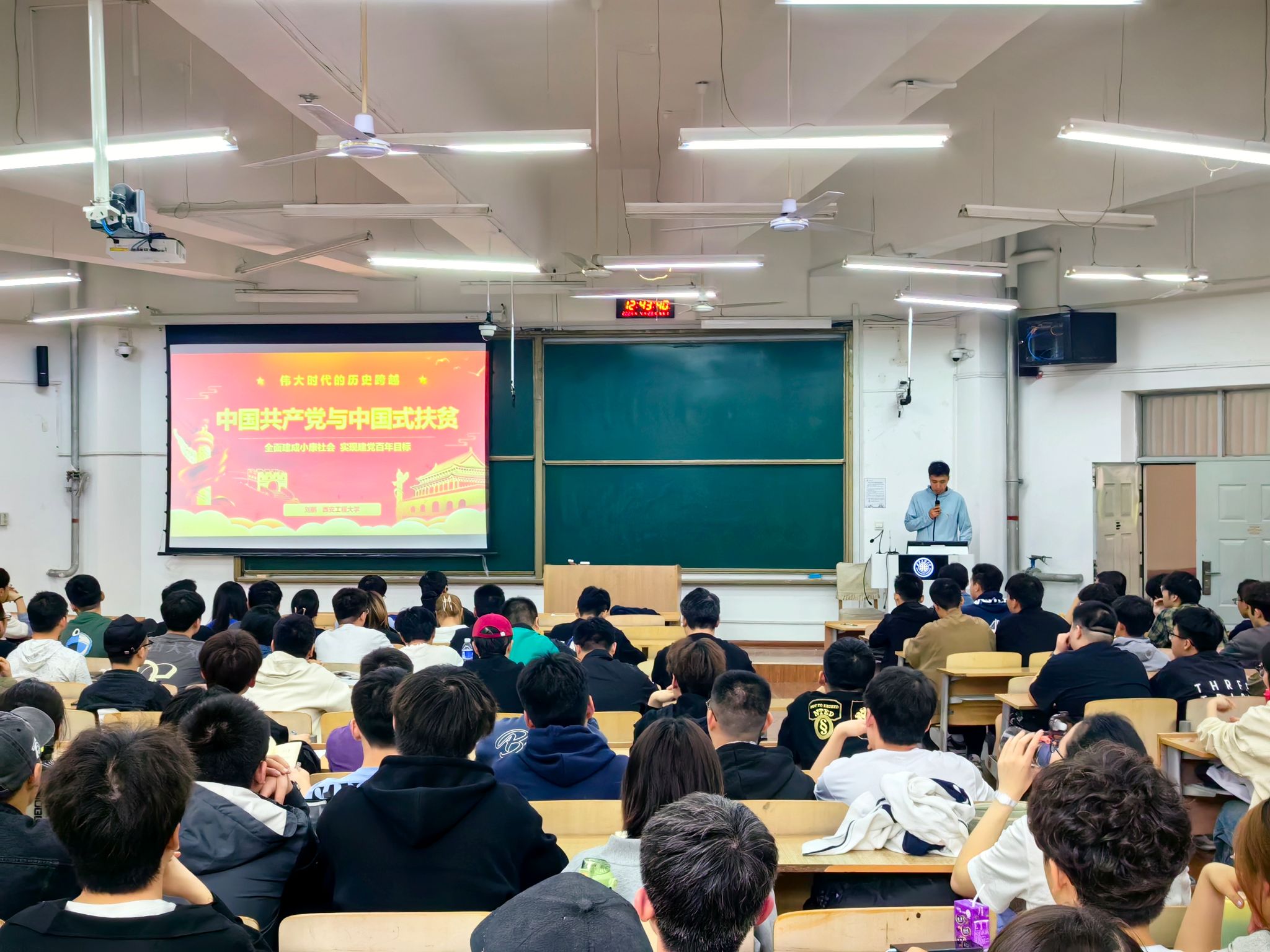 第二讲,由Beat365中文官方网站机制学生第一党支部书记刘鹏做了题为《中国共产党与中国式扶贫》的专题党课。刘鹏老师通过大量的数据和图文视频资料,概述了我国的贫困状况,指出中国式扶贫的制胜法宝习近平总书记提出的精准扶贫”理念。刘鹏列举了“休闲旅游、新能源开发、电商带货、特色种”等因地制宜的扶贫创举,展现了中国式扶贫的卓越成效,号召全体同学要深刻领悟学习“上下同心、尽锐出战、精准务实、开拓创新、攻坚克难、不负人民”的脱贫攻坚精神。