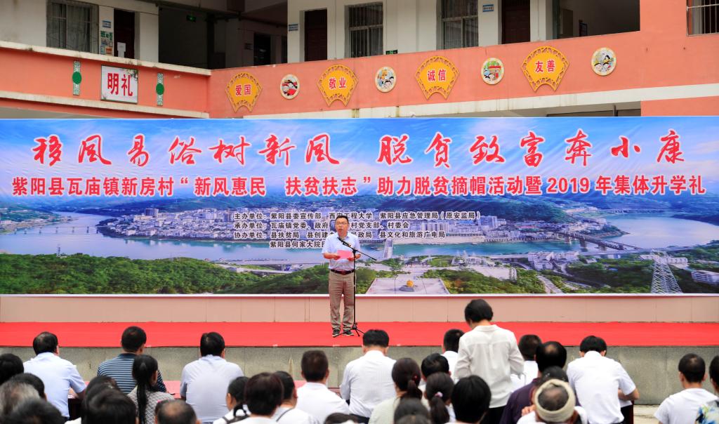 赵小峰一行参加了驻村联户新房村举办的“移风易俗树新风 脱贫致富奔小康 紫阳县瓦庙镇新房村‘新风惠民 扶贫扶志’助力脱贫摘帽活动暨2019年集体升学礼”,为“新民风模范家庭”和即将入学的大学生颁发了荣誉证书。活动结束后,赵小峰一行走访慰问了新房村贫困户,和他们拉家常、问冷暖、送上生活物品,同时鼓励他们要树立脱贫的信心、扎实发展产业,早日脱贫致富。