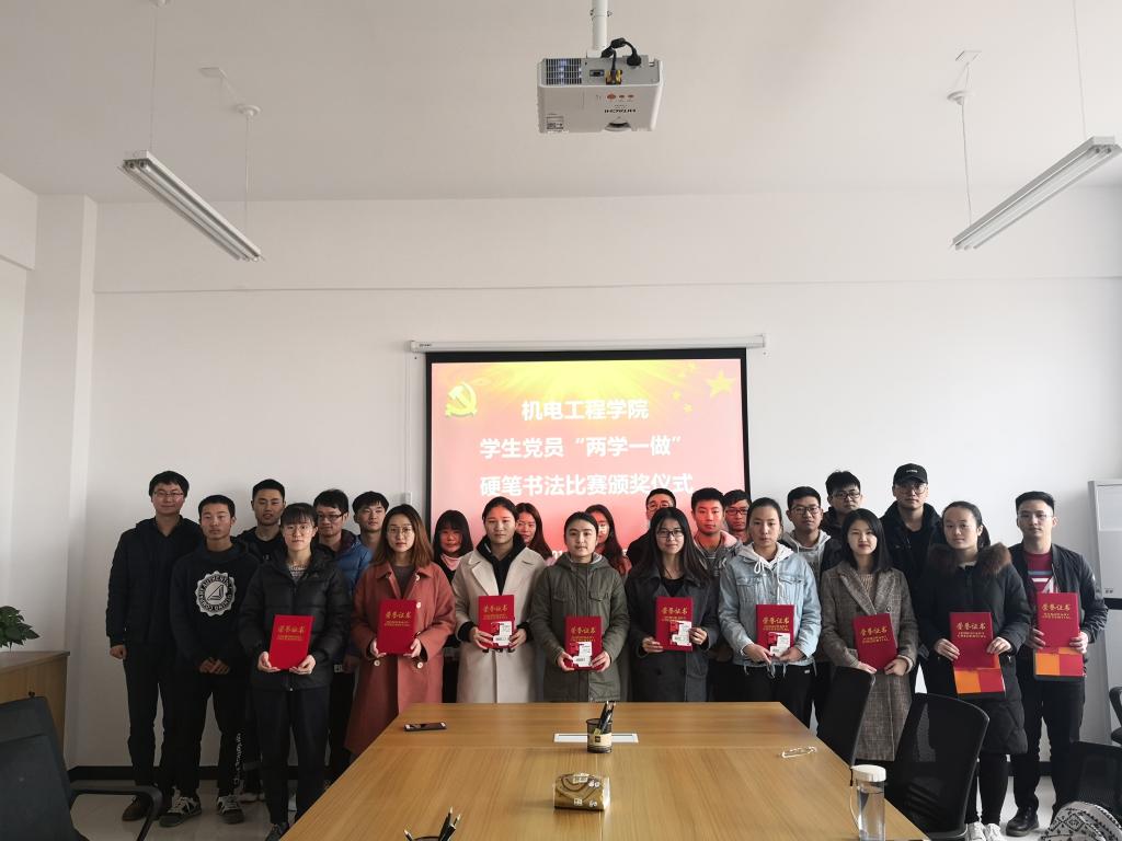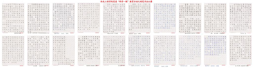 本次比赛是机电学院“党建+育人”系列活动之一,以深入推进“两学一做”学习教育常态化制度化为契机,旨在进一步加强学生党员的理想信念教育,牢固树立知党史、感党恩、跟党走的坚定信念,增强学生党员的荣誉感、责任感和使命感。党的十九大报告、《中国共产党章程》、社会主义核心价值观、《Beat365中文官方网站学生手册》、《Beat365中文官方网站校歌》等内容均在比赛抄写范围之内。本次活动共收到学生党员作品173篇,学院初选作品29篇,并邀请陕西省书法协会会员担任评审,最终评选出一等奖2篇、二等奖4篇、三等奖8篇、优秀奖15篇。