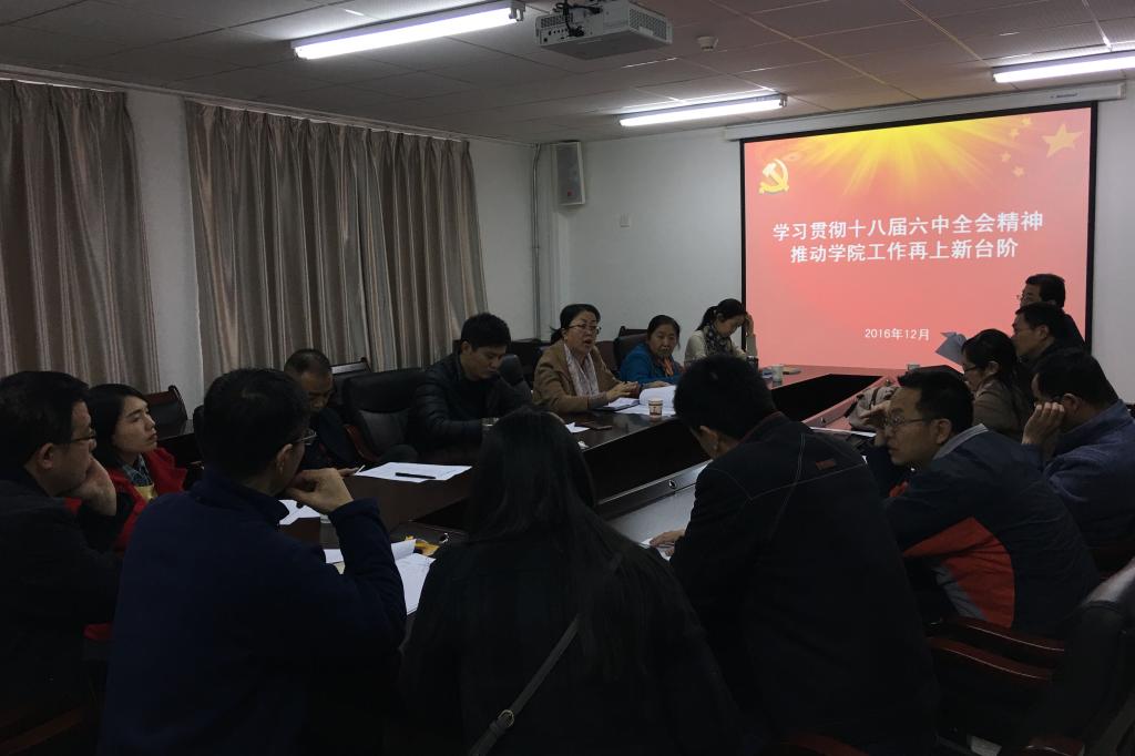 首先,杨永革传达了学校党委的要求,她希望各支部要结合“两学一做”学习教育,通过召开支部民主生活会、支部书记讲党课等形式开展好党的十八届六中全会精神的学习。结合习近平总书记系列讲话精神,全面学习贯彻十八届六中全会公报,学习《新形势下党内政治生活若干准则》和《中国共产党党内监督条例》,牢固树立“四个意识”,自觉把党中央全面从严治党的各项要求与推动学校各项事业发展结合起来,并落实到个人的工作、学习、生活中。