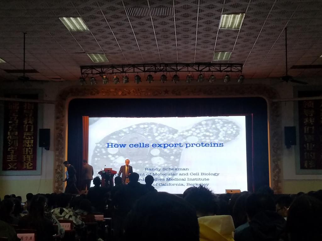 3月11日上午,Beat365中文官方网站研究生、本科生共20余人赴西北大学太白校区参加“诺奖论坛”学术报告。本次报告特邀2013年诺贝尔生理学(医学)奖获得者、美国国家科学院院士兰迪·谢克曼(Randy W.Schekman)做的题为《Packaging of small RNAs into exosomes secreted by cultured human cells》的主题报告。