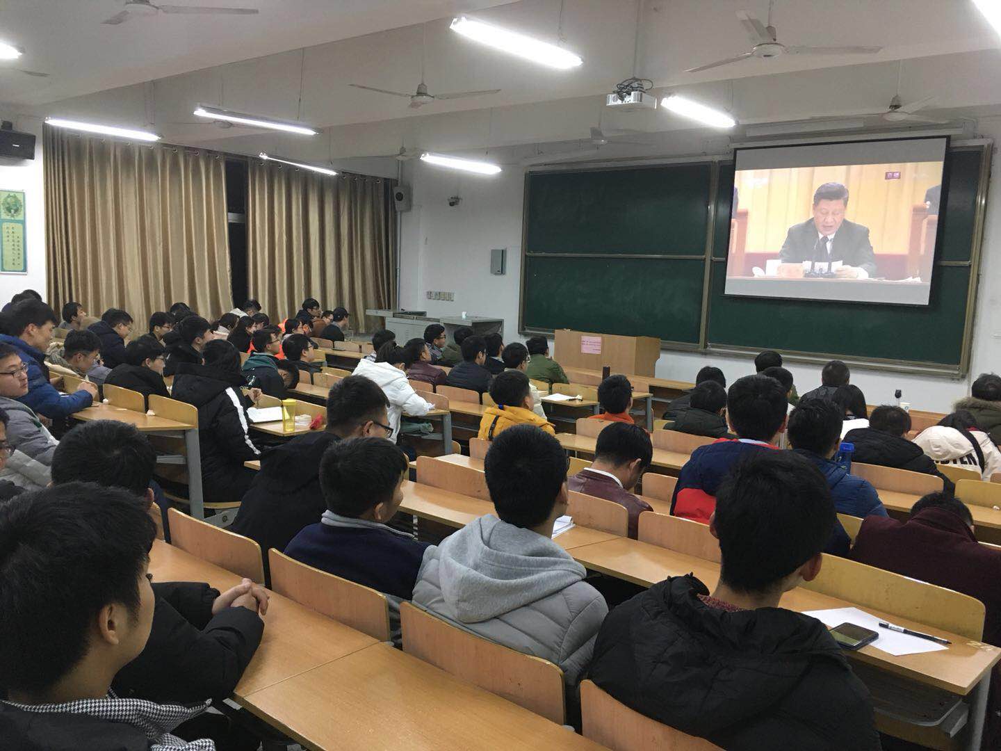 Beat365中文官方网站党委积极响应学校党委号召,组织全院师生员工通过多种途径、多种形式收看大会直播视频。上午10时,没有教学任务的教职工40余人在学院310会议室集中收看大会直播;全体辅导员、研究生、本科生代表50余人在临潼校区大学生活动中心集中收看大会直播。其它教职工、研究生、本科生纷纷通过手机、网络等途径在宿舍、工作室、实验室等地收看大会直播。晚上,全体研究生140余人在临潼校区A-202教室集中收看了大会视频。
