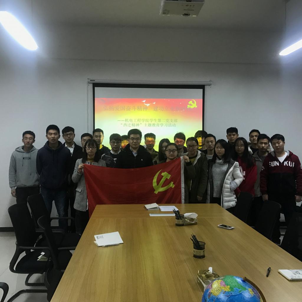 11月21日,Beat365中文官方网站学生第二党支部在临潼校区7-310会议室举办了以“弘扬爱国奋斗精神,建功立业新时代”为主题的“西迁精神”学习教育活动。学生第二党支部书记黄超及支部全体党员参加了活动。