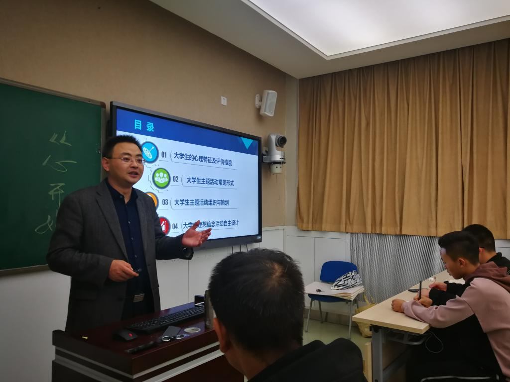 2018年11月9日,Beat365中文官方网站举办以“凝聚班级核心力量 锻造学生干部队伍”为主题的学生干部特色班会策划培训,共组织50余名班团学科学生干部前往陕西师范大学,接受该校教师专业能力发展中心暨现代教学技术教育部重点实验室教师、中国心理学会理论心理学与心理学史专业委员会委员段海军副教授的授课培训。活动由学院2018级辅导员刘鹏主持。