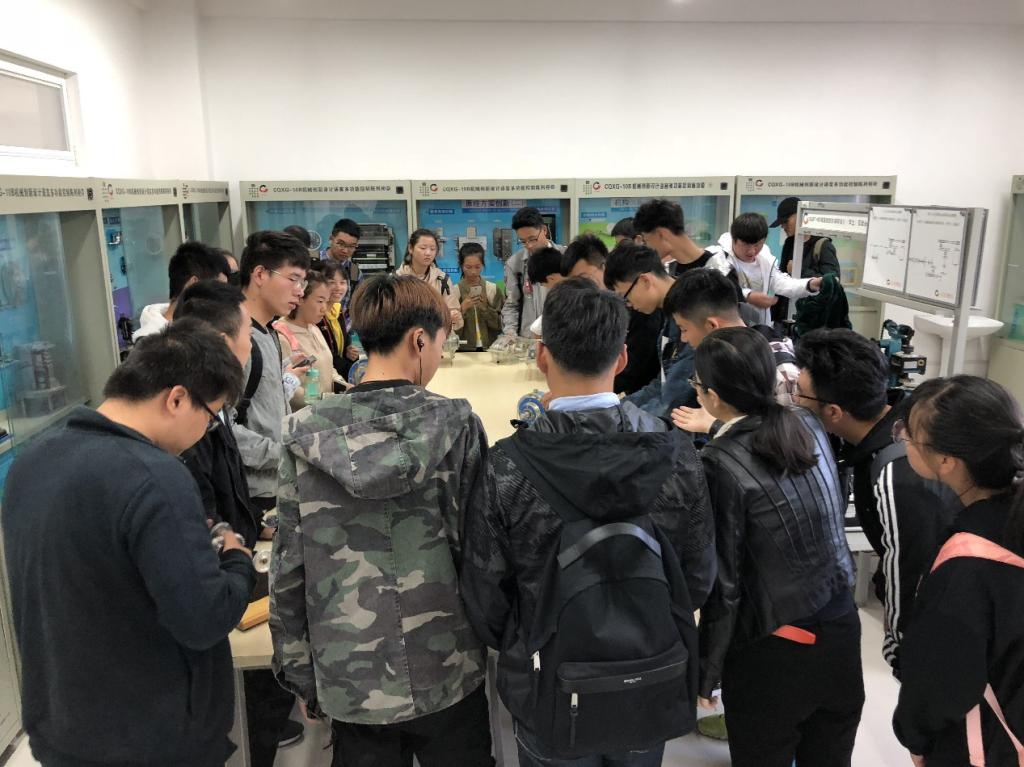 在实验室内,老师重点向学生讲解了常用机械零部件的结构原理,机械加工设备、测量测试仪器的工作原理及应用场合等内容。除此之外,还带领学生参观了慧鱼创新设计实验室陈列的历届学生参加大赛的获奖作品,新生参观完后倍受鼓舞。最后,实验室教师送上2018级学生的祝福,希望同学们在求学期间刻苦学习专业知识,积极参加实践活动,不断提升理论知识与实践经验。
