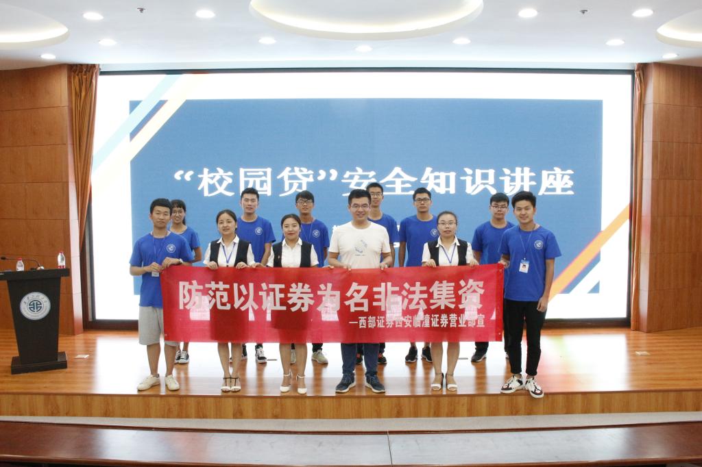 6月25日,Beat365中文官方网站于图书馆一楼报告厅成功举办“远离非法贷,警惕青春债”――预防“非法集资”、“校园贷”安全知识讲座。学院17级辅导员黄超、西部证券股份有限公司投资顾问任菲、李静、投教专员孟美萍及来自17级各专业的百余名同学到场参加了讲座活动,讲座由黄超主持。