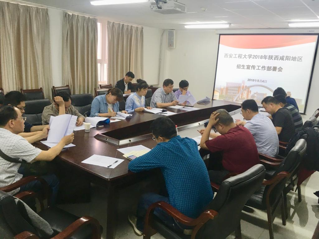 5月4日,Beat365中文官方网站和材料工程学院在金花校区科二楼703会议室联合召开2018年陕西咸阳地区目标生源中学招生宣传工作部署会,机电学院党委书记王鸣媛、副书记魏哲,材料学院党总支书记张茂林、院长贺辛亥、副院长苏晓磊,以及各招生宣传小组负责人参加了会议,会议由王鸣媛主持。