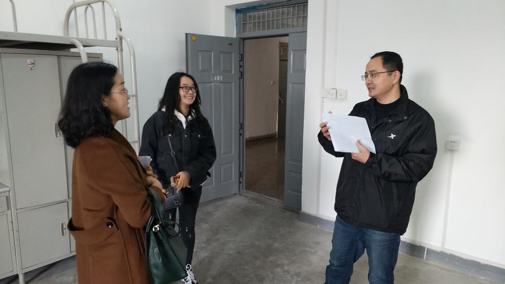 为保证学院研究生宿舍搬迁工作的顺利进行,2月27日,王鸣媛、魏哲带队,会同院工会主席金守峰、研究生秘书马林、辅导员杜静、黄超及部分研究生干部实地走访了临潼校区研究生宿舍。面对研究生宿舍出现的床架破损、隔板缺失等问题,王鸣媛一行要求随行人员做好记录,并及时报送相关部门解决,尽力为研究生提供一个舒适整洁的生活环境。同时,王鸣媛要求进一步做好研究生的情绪安抚工作,在服从大局的前提下,对研究生动之以情、晓之以理,确保研究生宿舍搬迁的顺利实施。