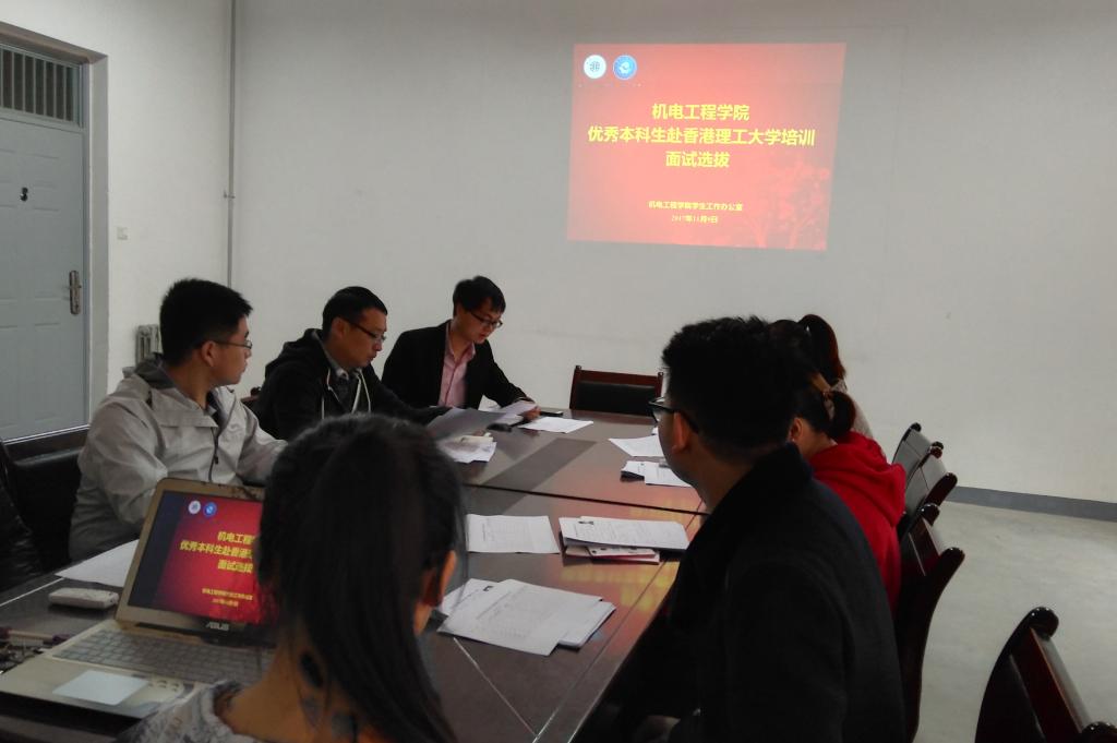 11月9日,机电学院举行选派Beat365官网优秀本科生赴香港理工大学进行领导力及创新能力培训面试选拔会。机电学院党委副书记魏哲、工业设计教研室教师俞琳、辅导员杜静、秦方刚、黄超及学生代表和参加面试的10名2015级优秀学生参加了此次面试选拔会,会议由秦方刚主持。
