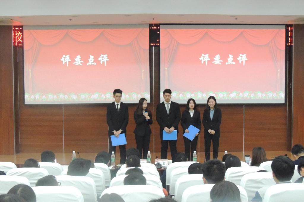 首先,魏哲致辞,他对学院优良学风示范班的创建工作进行了全面总结,激励全体同学切实加强班集体建设,珍惜学习机会,希望在场同学和班级要听有所思,学有所获,重在行动,为营造积极和谐的班集体氛围贡献力量。随后,参加答辩的班级代表从班级管理、学风建设、文化建设、班级发展和工作展望等多方面进行了精彩展示。参加答辩的学生代表感情充沛、条理清晰,充分展示了班集体团结互助、积极进取的良好氛围。一段段视频、一张张照片,记录着每个班集体从大一的适应、大二的认知转变到大三的拼搏和大四的硕果累累。在交流提问环节,评委诙谐机敏的提问,引导大家思考着一个又一个班级建设难题,解决着班级同学营造优良学风的各种困惑。最后,杜静对活动进行了总结发言,她充分肯定了各个班级取得的成绩,同时,也指出了存在的问题和改进建议,希望同学们要以本次优良学风示范班评比为契机,把计划和措施落到实处,共同营造班集体的良好氛围。