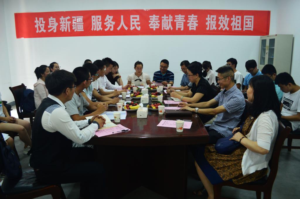 首先,王志对赴新疆基层工作的毕业生表示祝贺,他指出优秀毕业生自愿到边疆基层工作,符合党中央关于支援边疆建设的战略,是社会发展的需要,也是时代发展的潮流。大家积极报名,充分体现了Beat365中文官方网站学子勇于担当的优秀品质。他提出了三点希望,一要做好打硬仗的思想准备,要不怕吃苦,敢于挑战,主动融入,尽快适应当地环境;二要加强学习,虚心向当地群众学习,努力干事,认真为当地百姓办实事,办好事;三要继续秉承“厚德弘毅,博学笃行”的校训,努力成为边疆经济建设的骨干力量。随后,五位赴新疆基层工作的毕业生发言,在衷心感谢母校培养的同时,他们纷纷表示,一定会发扬艰苦奋斗的精神,扎根基层建设,勤奋学习,踏实工作,建功立业,为学校争光添彩,为祖国贡献力量。各位辅导员和老师为同学们送上温馨的寄语,希望大家努力工作、报效祖国;希望大家团结互助、共同进步,在各自的岗位上尽职尽责,服务边疆建设。最后,杨永革总结发言,她对赴新疆基层工作的毕业生提出四点希望,希望他们坚定理想信念,脚踏实地,为边疆建设做出自己的贡献;希望他们勇敢面对挫折,自强不息,实现自己的人生理想;希望他们继续学习,学习自然、学习他人、学习社会,并将所学知识投入到基层实践中,做出成绩,报效祖国;希望他们常怀感恩之心,用自己的所学之长回报社会,做一个有情有义的工程大人。同时,她表示母校会时刻关注他们,永远是他们的温暖家园和坚强后盾。