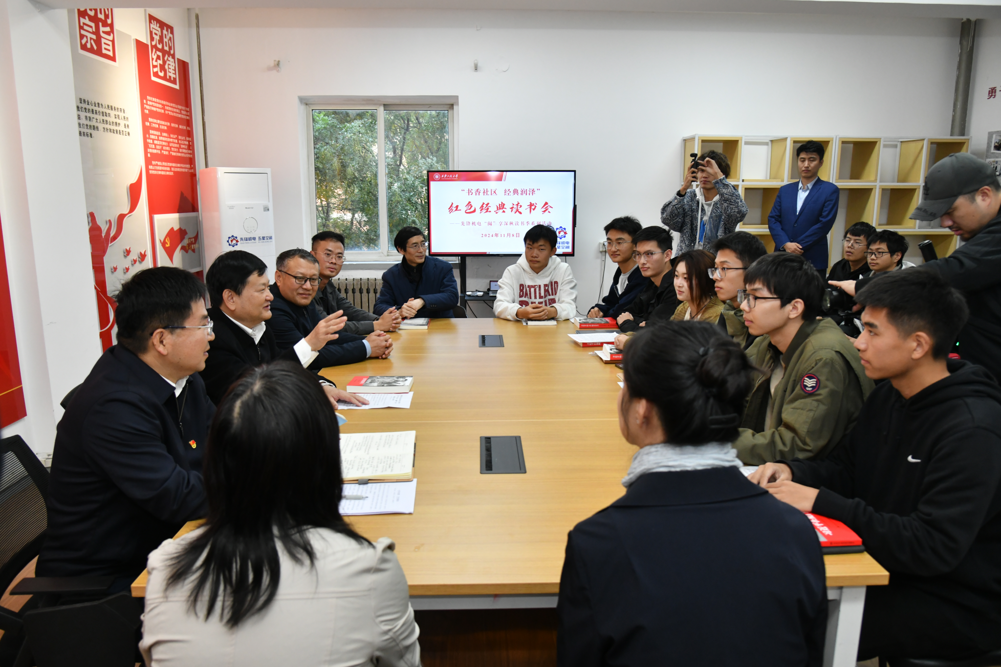 据悉,“羽翮堂”书屋致力于营造“人人乐读书,人人好读书、人人善读书”的书香氛围,为“一站式”学生社区文化赋能做出贡献。此次“书香社区经典润泽”红色经典读书会之“‘阅’享深秋”读书季系列活动是机电学院党委深入学习贯彻党的二十届三中全会精神和认真落实《高校“一站式”学生社区综合管理模式建设提质增效指南》的具体实践,学院将以“一站式”学生社区“羽翮堂”书屋为阵地,实现社区书屋开放式的零距离阅读共享,构建浓厚良好的社区特色文化,完善社区文化育人体系,让学生在社区文化的浸润中成长成才。