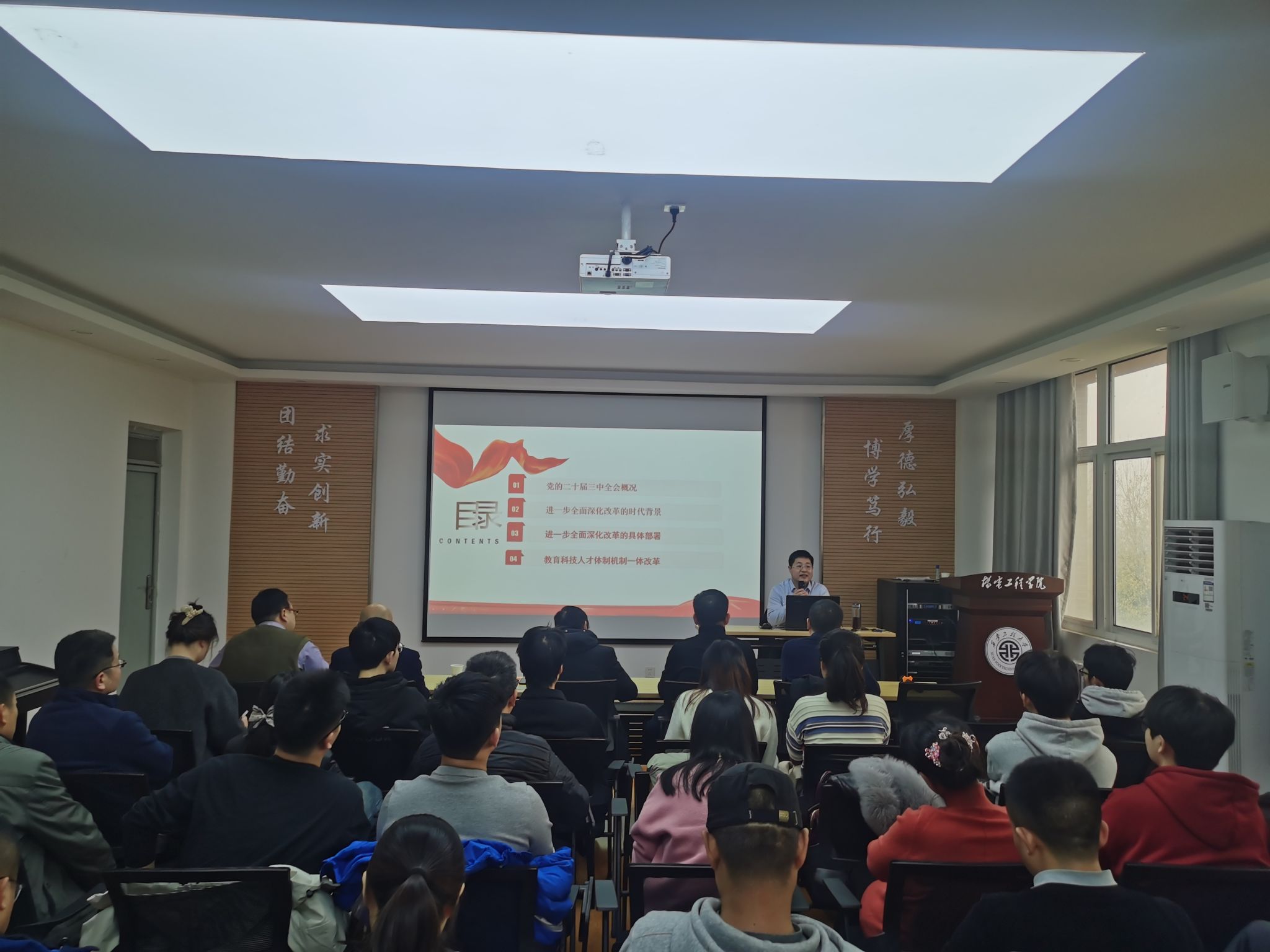 报告会上,郭松从党的二十届三中全会概况、进一步全面深化改革的时代背景、进一步全面深化改革的具体部署和教育科技人才体制机制一体改革四个方面进行了全面的讲解。整场报告理论联系实际、内涵丰富、阐理透彻,对学深悟透党的二十届三中全会精神具有较强的指导意义。报告会之后,大家纷纷表示,将以更加坚定的信念和饱满的热情,投身于教育教学工作中,使全会精神在教育领域落地生根、开花结果,为培养社会主义建设者和接班人、推进教育强国建设做出应有贡献。
