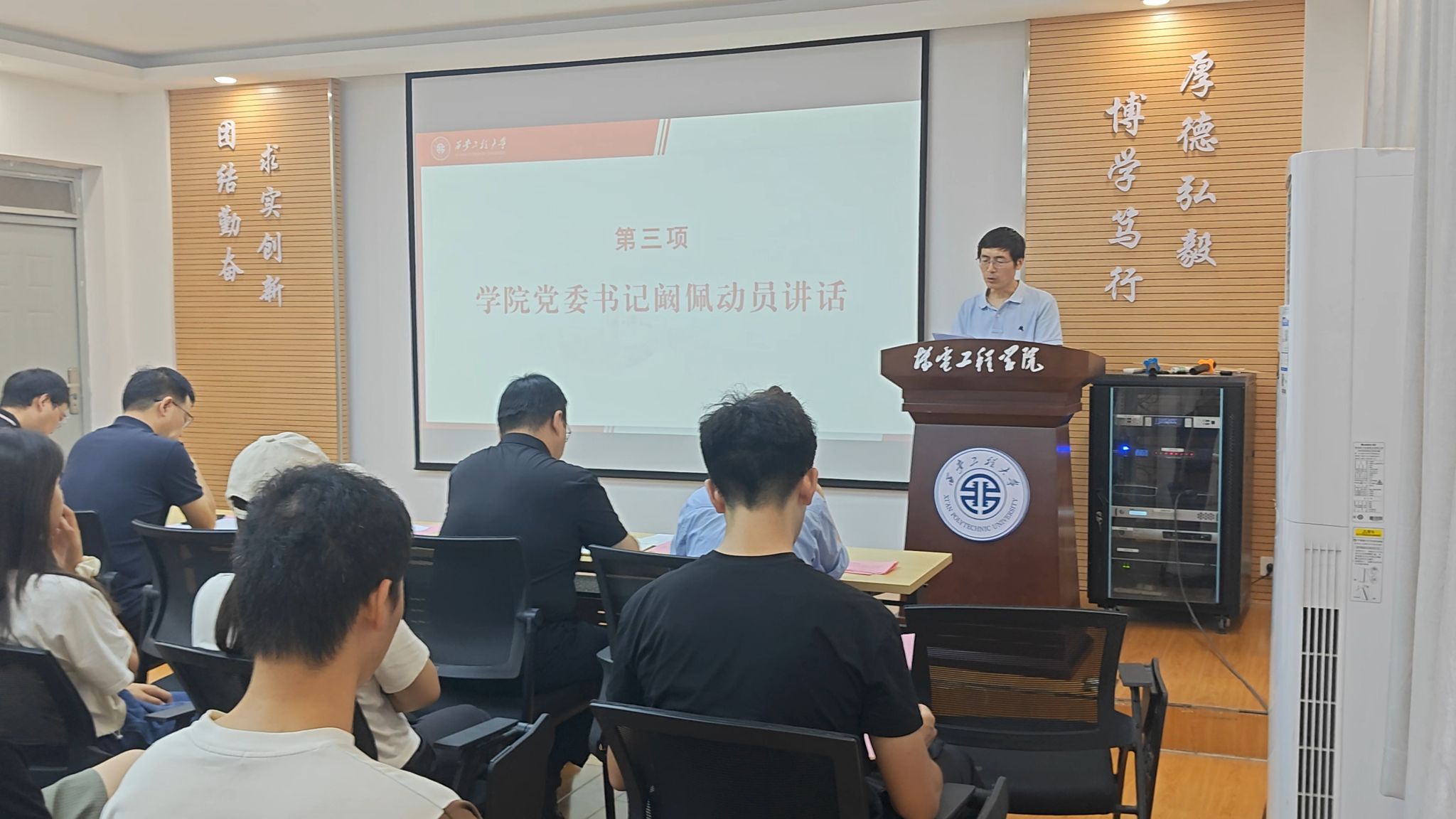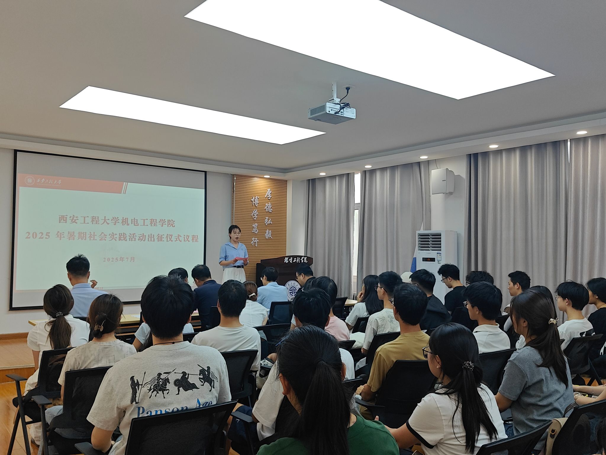 7月8日,Beat365中文官方网站于临潼校区笃行楼307学术报告厅举办2025年暑期“三下乡”社会实践出征仪式。学院党委书记阚佩,副院长(主持工作)肖渊,党委副书记冯翊,学工办主任秦方刚,团委书记刘鹏出席本次会议,会议由学院团委副书记李菁菁主持。