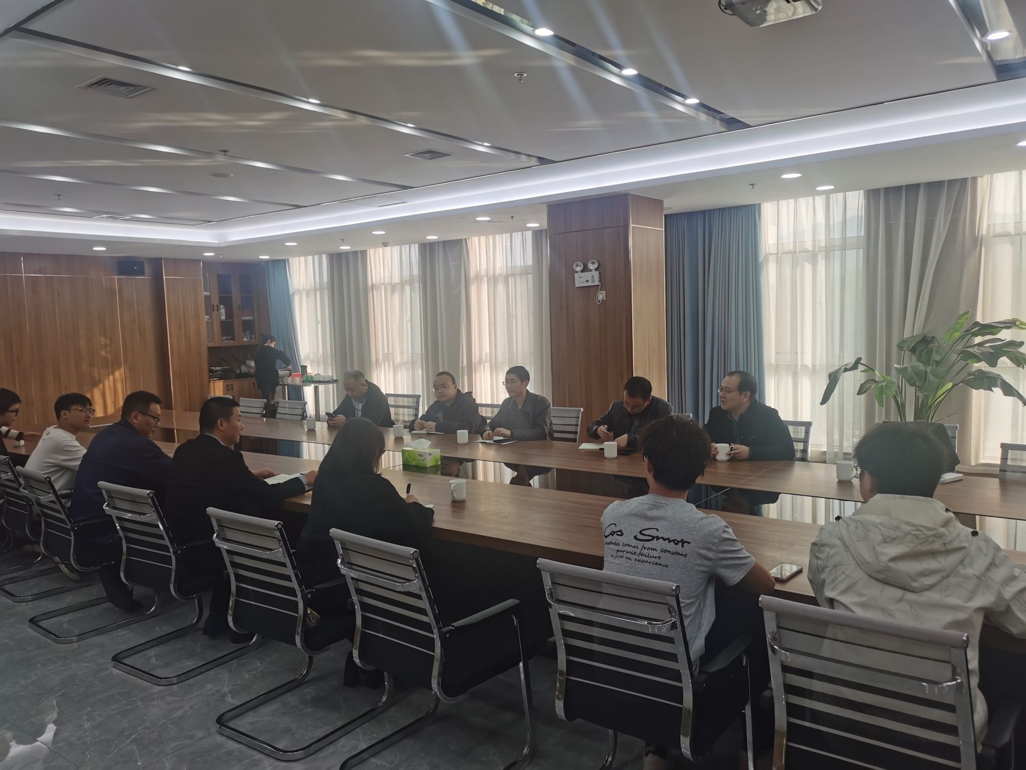 10月30日,一行6人来到安康安瑞智能制造有限责任公司参观座谈交流。交流会上,汉滨区科技局党组书记徐军介绍了区域科技创新扶持政策及校地企合作基础,明确表示将全力支持张团善教授团队与安瑞智能的袜机科研项目攻坚。企业负责人重点汇报了与张团善团队的合作进展,详细说明了当前技术瓶颈及亟需高校层面支持的协作方向。阚佩表示,学院将以党建为纽带,进一步整合师资力量与科研资源,聚焦企业实际需求精准发力,实现校企互利共赢。