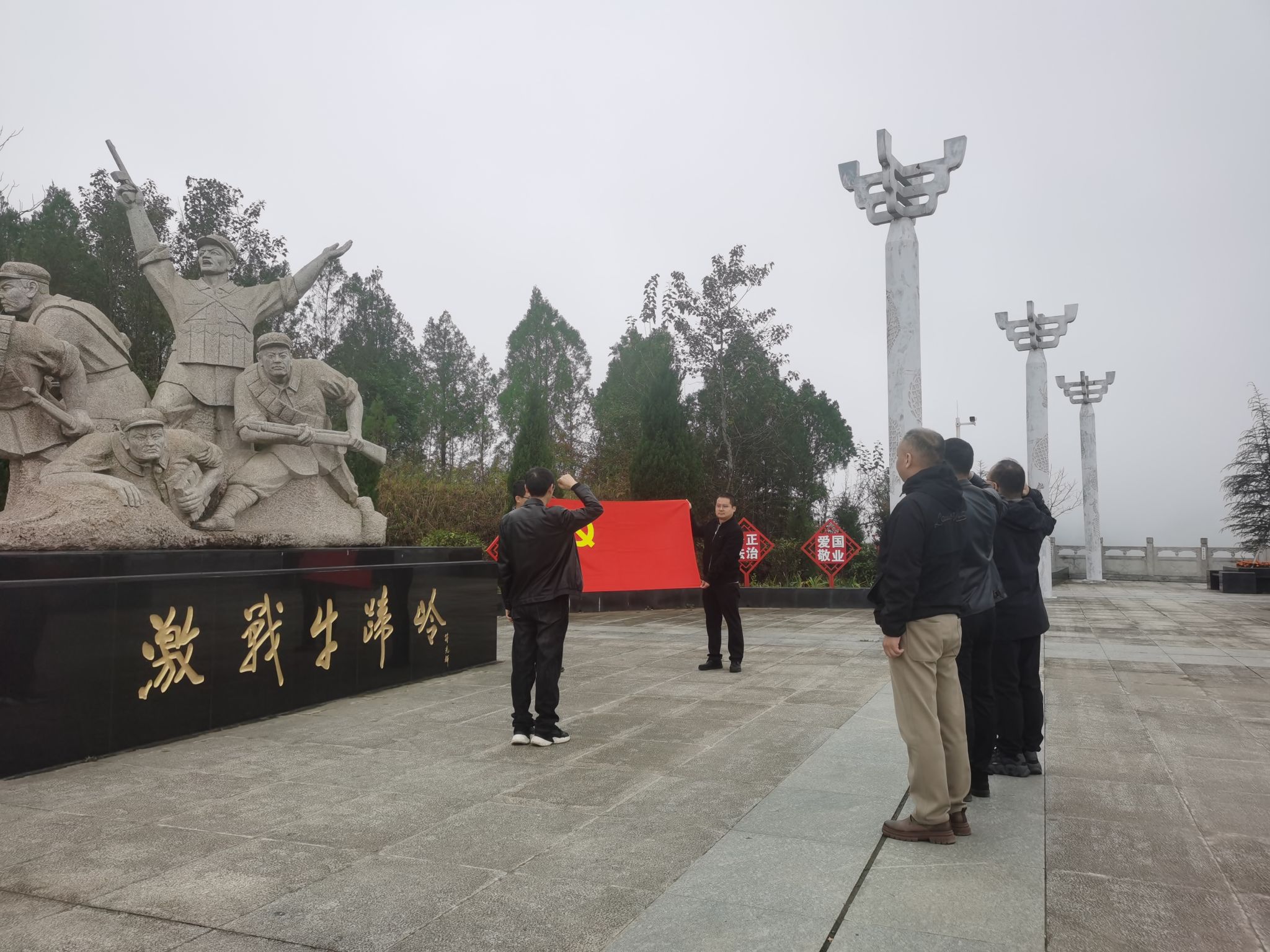 10月31日,一行6人前往牛蹄岭革命战斗遗址,开展红色主题教育活动,大家参观了战地工事、纪念馆陈列展区,认真聆听了牛蹄岭战役中革命先烈浴血奋战、坚守阵地的英雄事迹,进一步坚定了大家坚守教育初心、勇担育人使命,在教学科研岗位上攻坚克难、勇往直前的信念与决心。