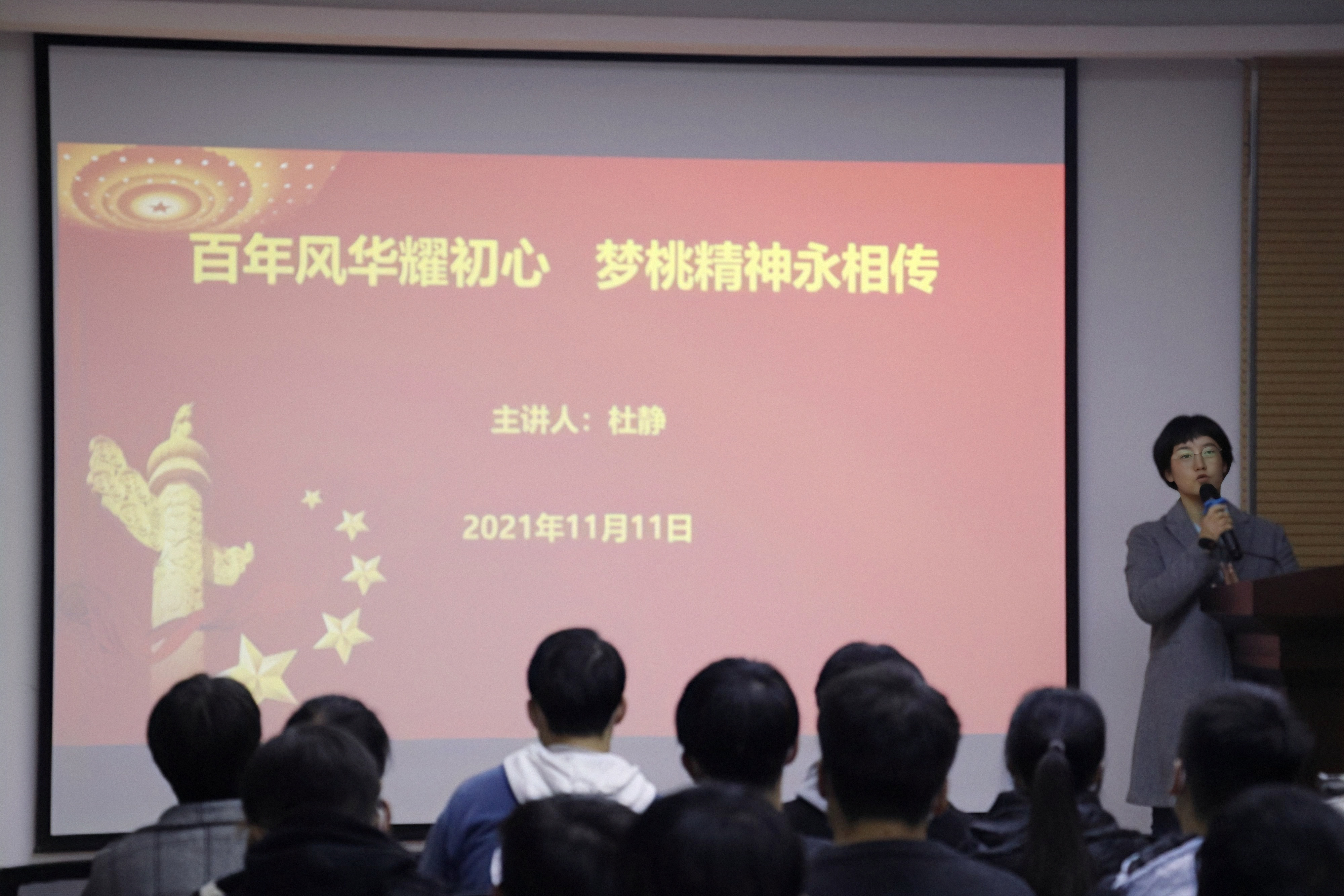 2021年11月11日晚,Beat365中文官方网站力行致远导师团举办“百年风华耀初心梦桃精神永相传”主题党日活动,机制学生第二党支部书记杜静讲授了专题党课,50多名学生党员参与活动。