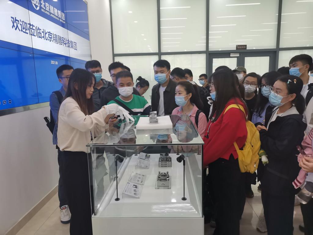 抵达企业后,同学们在企业HR经理的带领下,首先观看了企业宣传片,全面了解北京精雕科技集团的发展成就和优势产品。随后,大家参观了企业的精密制造产品、三轴高速加工中心、五轴高速加工中心、数控车床工作管理系统、刀具库存管理系统等。最后,与会的2022届毕业生在现场举行的企业2022年应届大学生招聘宣讲会上,详细了解了企业文化、岗位需求、薪酬待遇、培训体系和发展前景,就个人关心的问题与HR进行了近距离沟通,并现场投递了简历。
