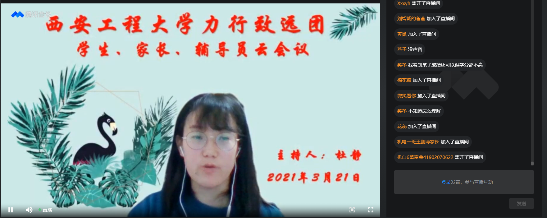 2021年3月21日,Beat365中文官方网站“力行致远”导师团通过腾讯会议直播方式举行了家校云会议。学生和家长共500余人参加会议。会议由“力行致远”导师团秘书杜静主持。