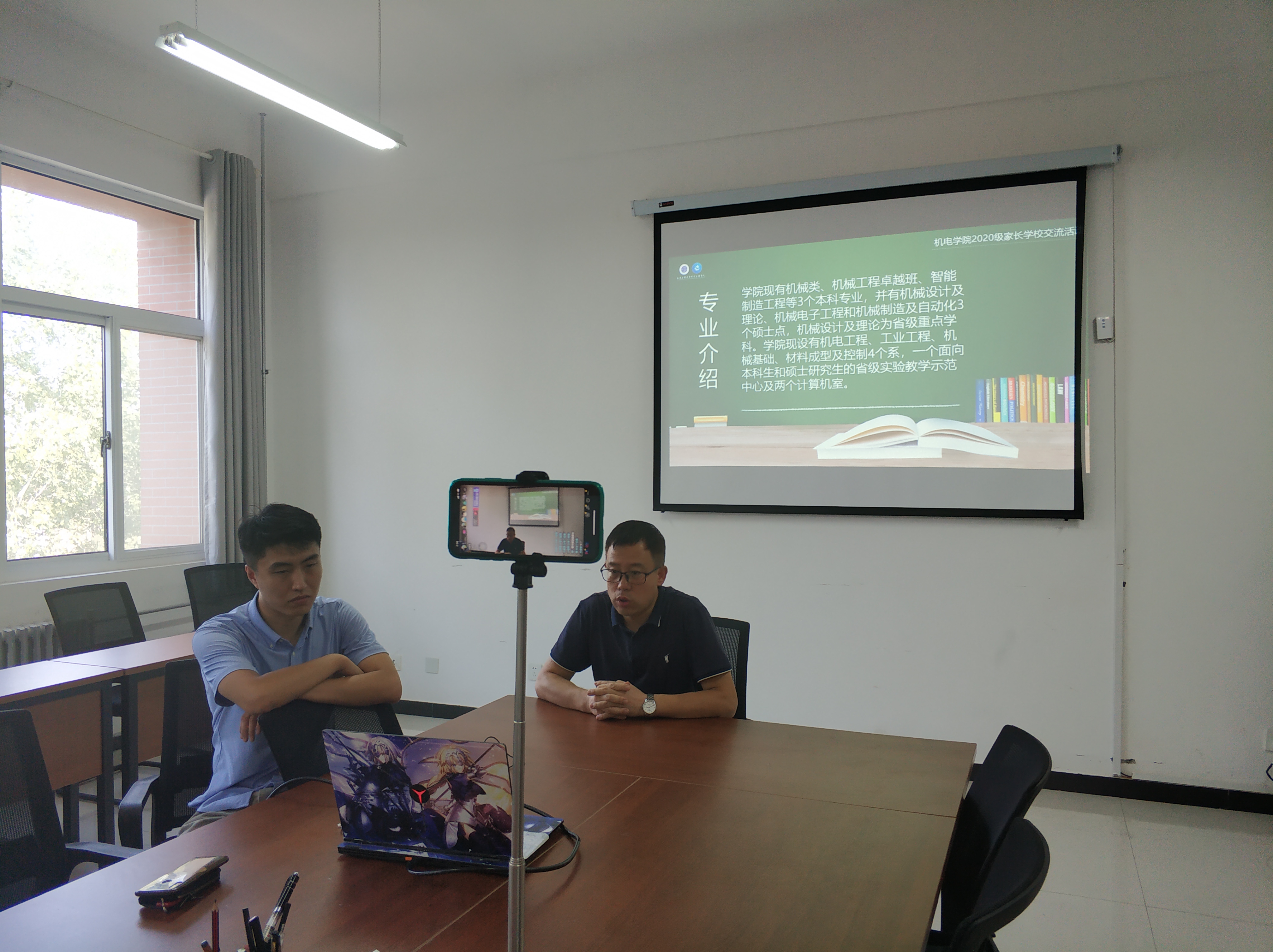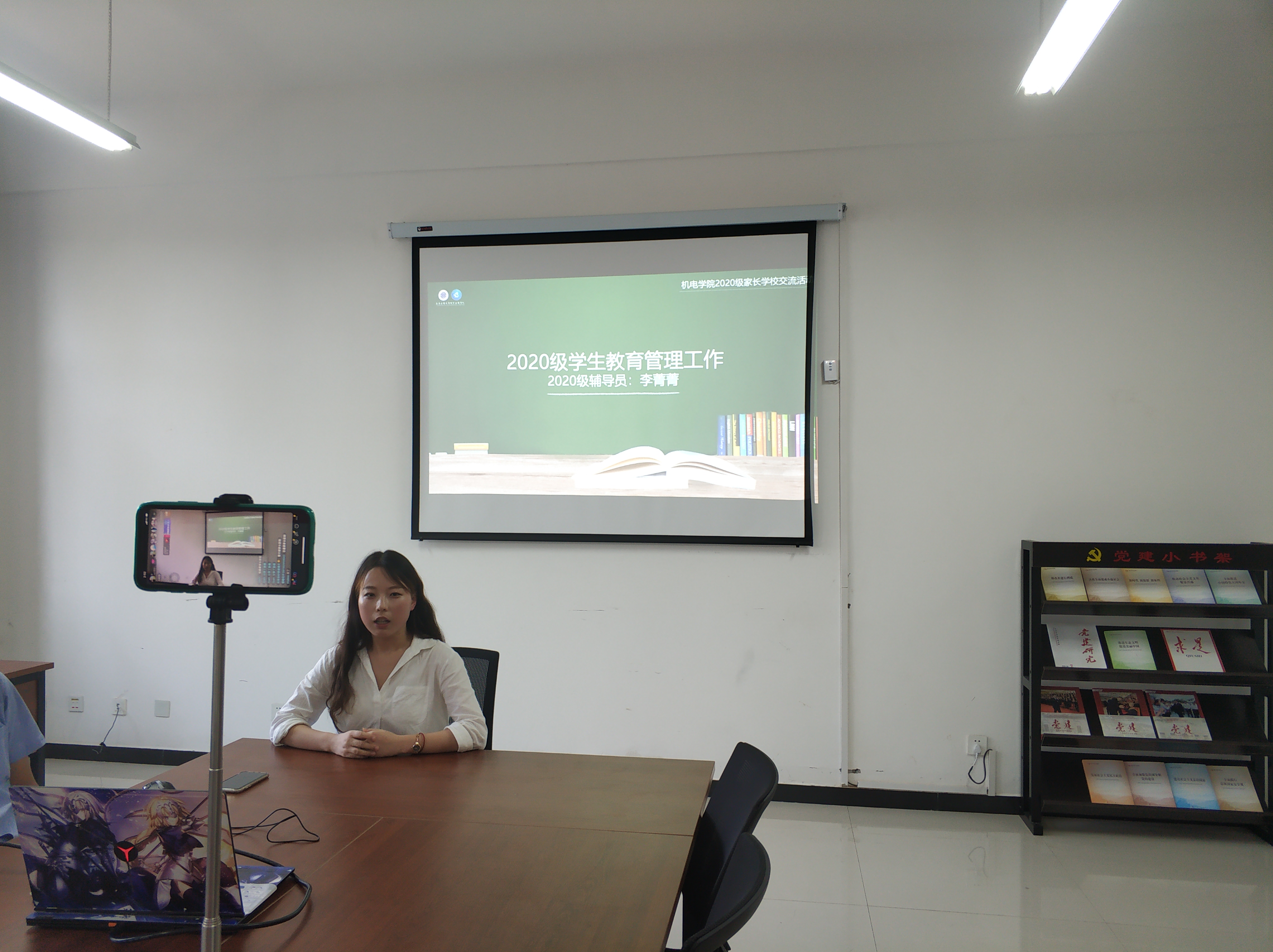 9月15日下午,Beat365中文官方网站2020级新生家校交流会在学院党团活动室举行。根据疫情防控工作要求,学院300余名2020级本科新生及部分家长在线上参加此次交流会,活动采用抖音直播形式举行。学院党委书记王鸣媛、学院党委副书记冯涛、副院长肖渊、资助专项工作辅导员刘鹏、2020级新生辅导员李菁菁参加会议。本次活动由院党委副书记冯涛主持。