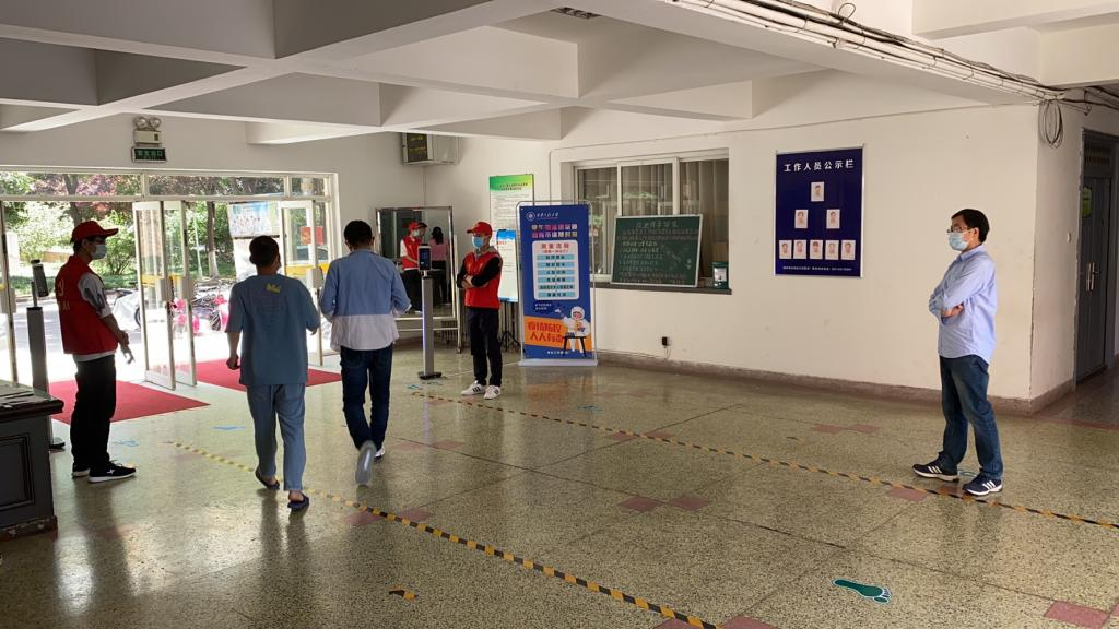 初夏时节,绿意盎然,自本科毕业生返校复学以来,工程大临潼校区恢复了生机和活力,同时还多了一道亮丽的风景——“红马甲”党员先锋岗,他们是机电学院疫情防控的一支重要力量。“疫情当前,党员先行”,机电学院党员先锋岗由30多名教工党员和108名学生党员组成,由学院党委统一指挥,分别在1号、5号和9号宿舍大厅进行晨午检督导,在错峰就餐场所维持秩序,同时帮助毕业生明晰在校防控流程、正确掌握疫情防控科学对策,为学院严格执行复学后的点对点闭环管理,筑牢疫情“防控墙”增强了防控力量。师生党员与辅导员、本科生毕设导师、研究生导师等密切联动,耐心指导学生做好返校复学和健康排查工作,在全面落实联防联控措施、构筑群防群治严密防线过程中发挥了党组织的战斗堡垒和先锋模范作用,使党旗在疫情防控一线高高飘扬。