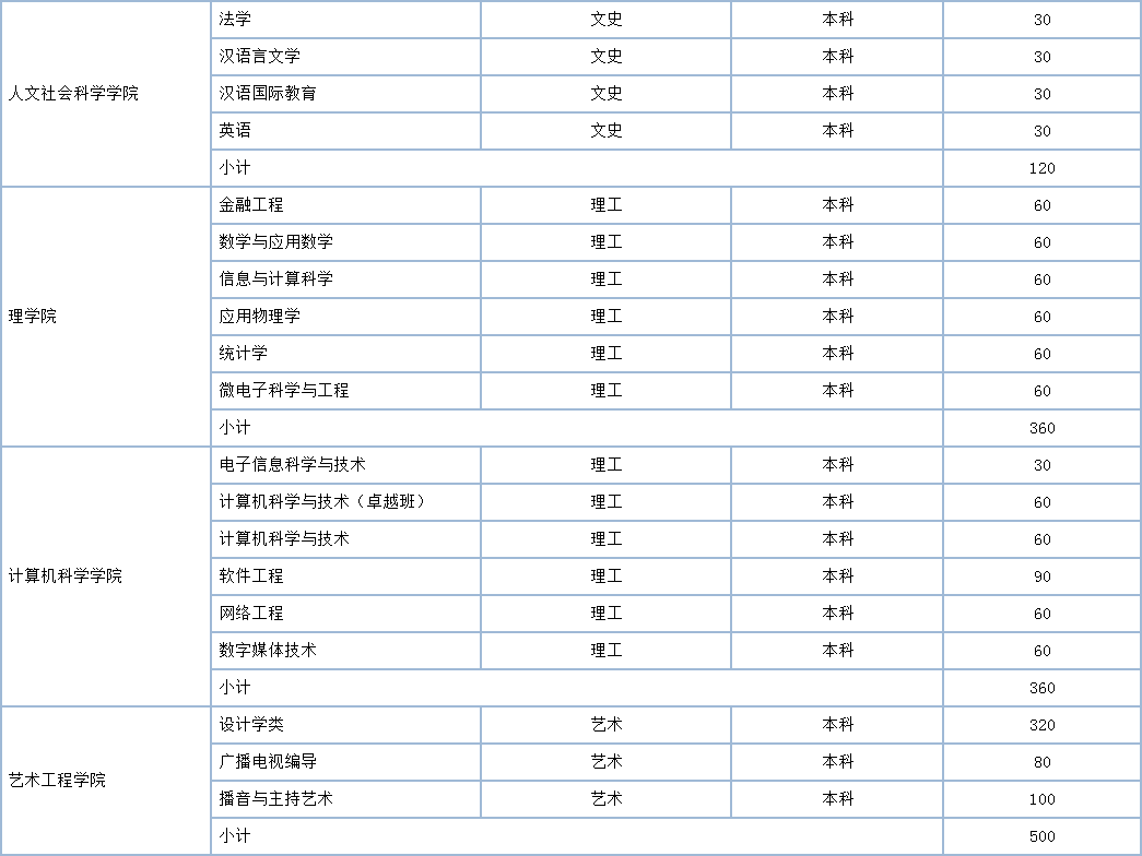 Beat365中文官方网站2017年分学院、分专业本科招生计划