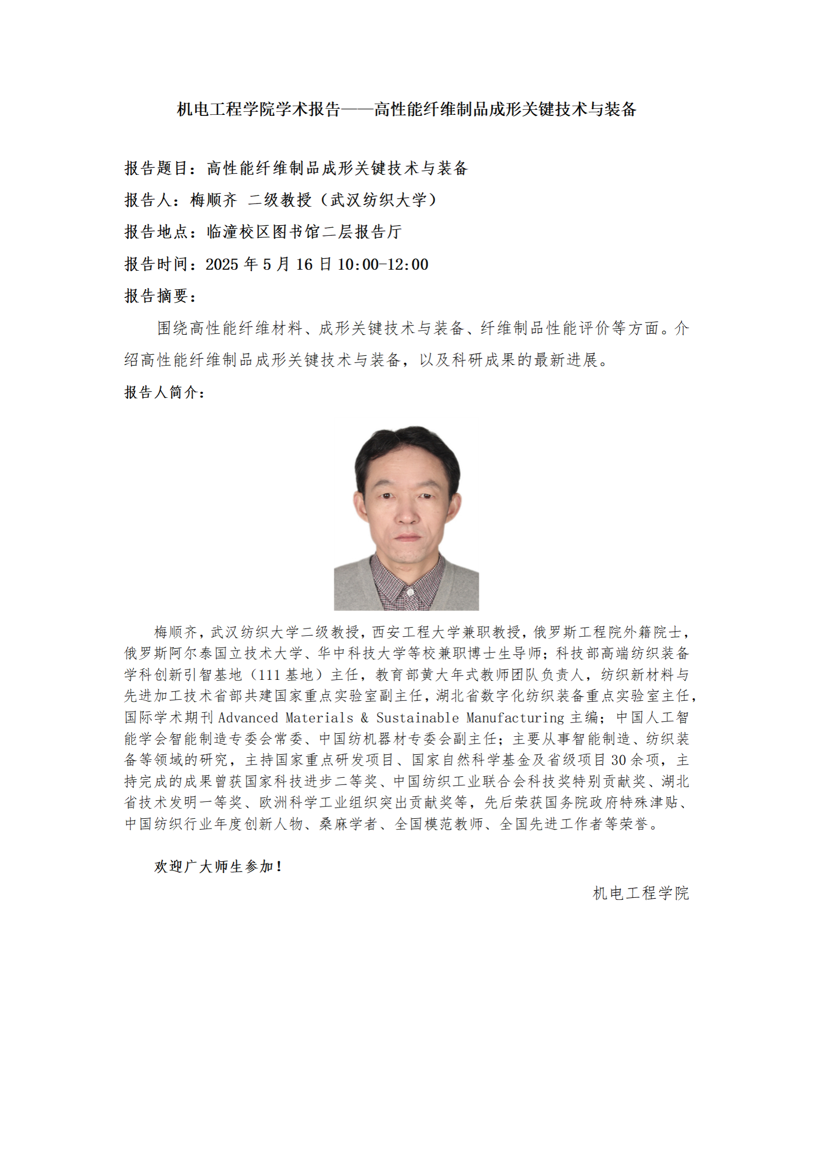 Beat365中文官方网站学术报告——高性能纤维制品成形关键技术与装备