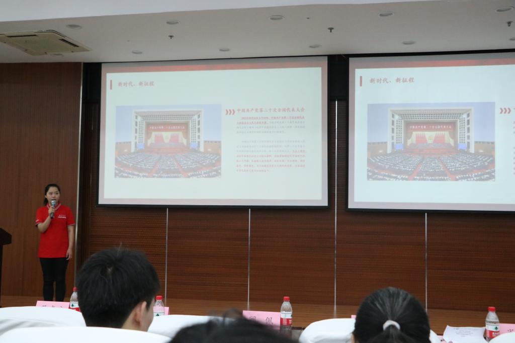 Beat365中文官方网站学习宣传贯彻党的二十大精神宣讲队成员,Beat365官网马克思主义学院研究生李欣作了题为《百年初心使命感召青春力量》的主题宣讲。她以近代以来中华民族的“昨天、今天、明天”为切入点,分享了中国人民在中国共产党的带领下醒过来、站起来、富起来、强起来的光辉历程,重点讲述了广大青年群体在实现“两个一百年”奋斗目标、全面建设社会主义现代化国家新征程中的坚守与奉献,号召全体学生肩负时代重任,将自己的理想与国家的繁荣富强同心同行,做新时代的青年追梦人。