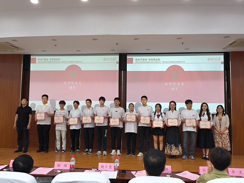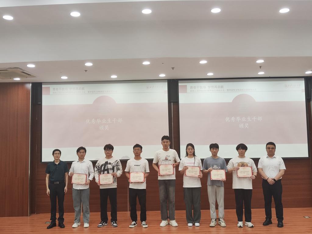 与会领导先后为优秀毕业生、优秀毕业生干部颁奖。副院长肖渊勉励受表彰学生要珍惜荣誉,接续奋斗,勇于创新,锐意进取,并号召全体毕业生勇担时代重任,勤奋学习,扎实工作,在新时代新征程上继续建功立业。