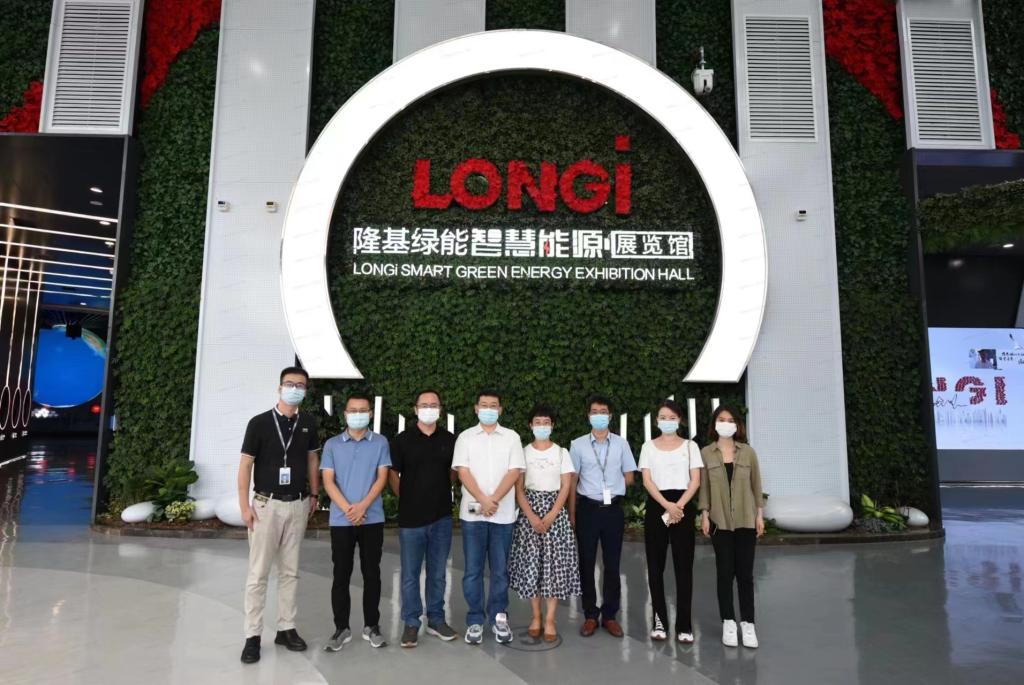 孙彩峰首先带领冯涛一行参观了隆基绿能企业展示厅,全面介绍了企业发展历程、全产业链和“双碳”时代企业未来发展愿景。随后双方围绕2023年校园招聘工作、基于就业导向的产教合作等开展了深入和广泛的交流。冯涛对隆基绿能给予学院第三届研究生暑期夏令营的支持表示感谢,详细介绍了学院2022年就业情况、2023届毕业生生源情况、学院近年来坚持就业导向开展的一系列大学生实践创新能力提升项目和成果。冯涛表示,进过近年来持续开展的就业信息共享、“名优企业行”、企业参与就业指导等一系列举措,Beat365中文官方网站毕业生就业单位高度分散的局面得到扭转和改善,毕业生向行业龙头企业、知名企业聚集度持续提升,为稳就业提供了压舱石,为深入开展产教合作奠定了基础。隆基绿能是学院招聘规模最大的单一企业之一,希望能够就业为切入点,充分发挥就业导向作用,将企业招聘向人才培养前段延伸和融合,提高人才培养的针对性和供给精准性。孙彩峰代表公司对冯涛一行表示热烈欢迎。孙彩峰对近年来入职的Beat365中文官方网站毕业生工作态度和能力表示认可,并介绍了公司2023年招聘计划和校园校聘方案,对双方深入合作表达了意愿。