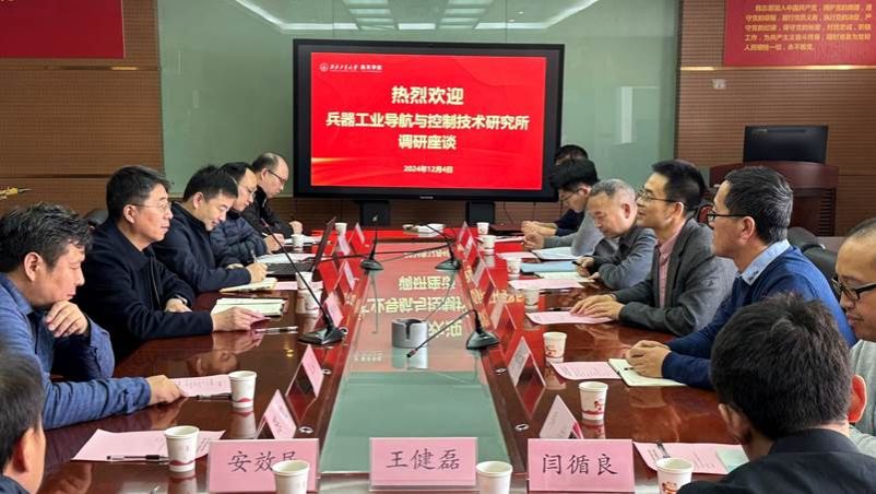 2024年12月4日下午,兵器工业导航与控制技术研究所党委书记、副所长韩磊一行来访williamhill中国官方网站调研交流。双方围绕校企协同创新、需求配套合作、成果转化、人才培养等方面进行了座谈交流。williamhill中国官方网站院长黄攀峰、学术委员会委员闫晓东、相关领域团队负责人及研究所代表教师参会,会议由黄攀峰主持。